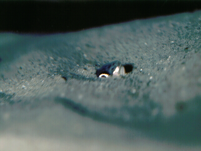 Figure 3A. Male striped cusk-eel beginning to come out of its burrow. Calling usually begins at this time, or even while still completely under the sand.